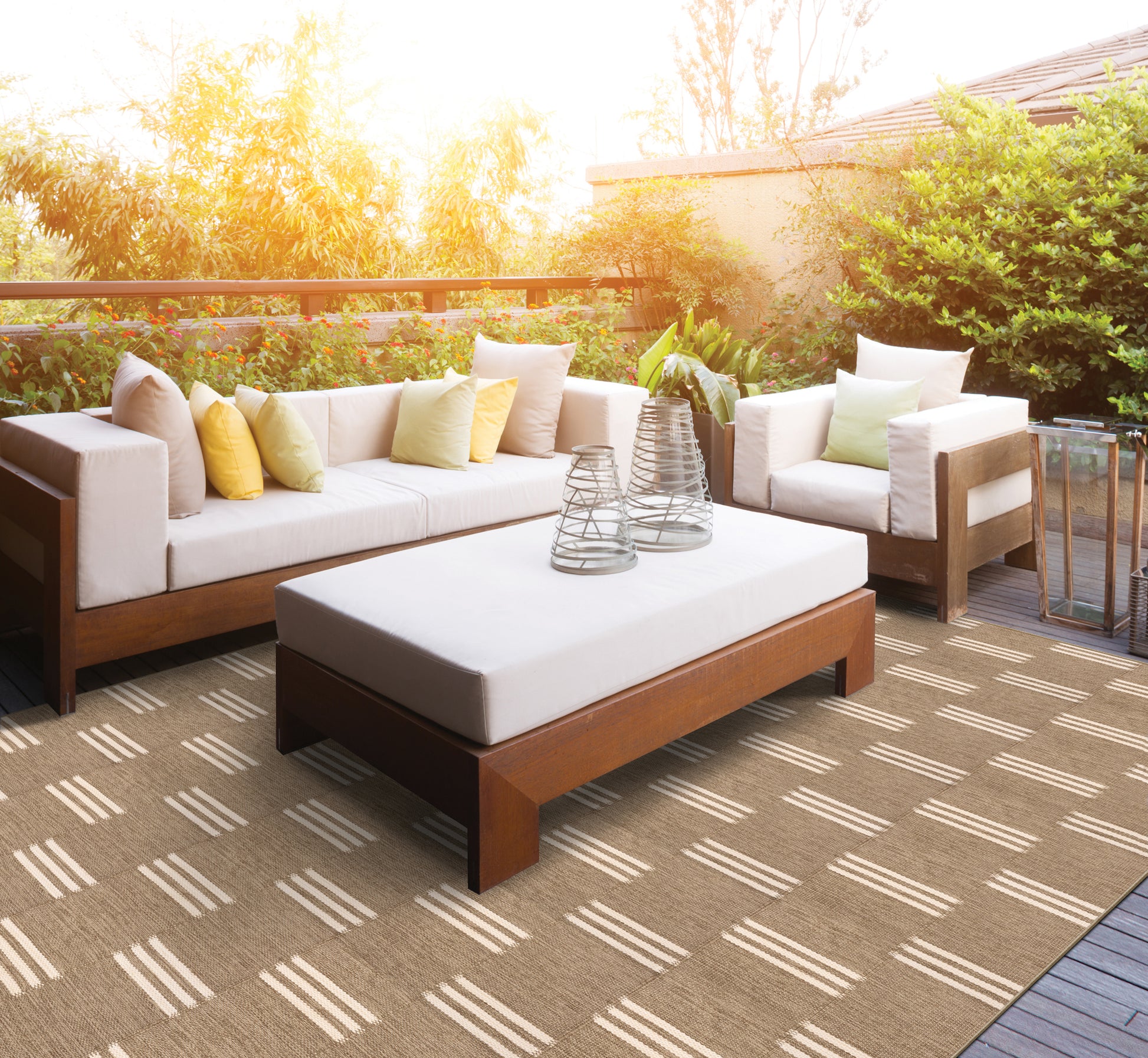 Malia's meticulously crafted, hand-woven stripes bring both style and resilience to your decor. This visually captivating design creates a perfect setting indoors or out, effortlessly combining sophistication with remarkable performance.